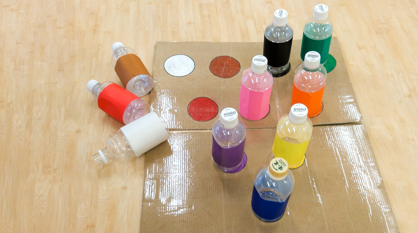 色とりどりのボウリングのピンとシートで、手作りボウリングに挑戦!楽しく遊びながら、色の名前や色のマッチングを覚えます。ボールを投げるときに、「どうしたらうまく投げれるかな?」と考えることで、手や身体の使い方もぐんと上手に。